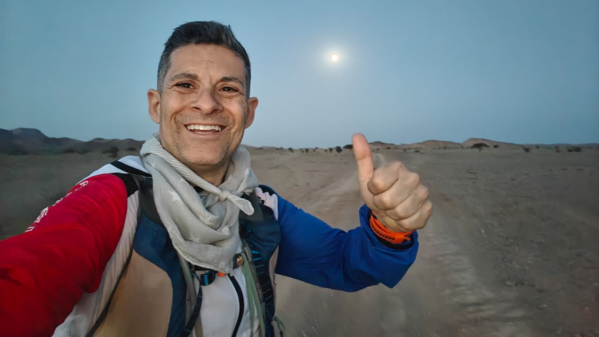 En un viaje en 2023 al Sáhara marroquí descubrió una conexión con el desierto. Por eso, ha vuelto ahora para su reto que arrancó a las cuatro de la madrugada. Cuenta que a medida que pasó el día, notó los efectos del calor intenso e incluso llegó a tener alucinaciones por "el agotamiento, la deshidratación y el silencio del desierto".