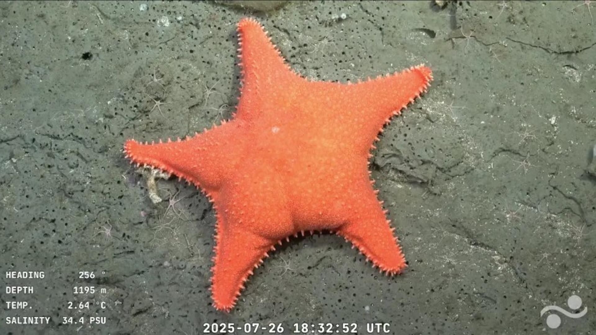 • Una estrella de mar naranja, hallada 1,195 metros bajo el mar, se volvió famosa horas después de ser mostrada por los investigadores