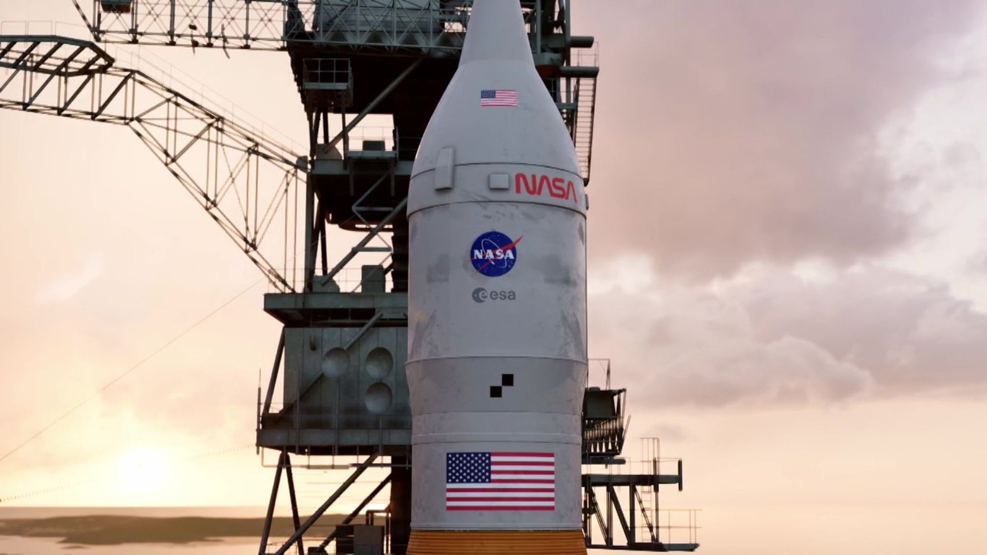 El protagonista del viaje es el cohete SLS Orion, de 98 metros de altura y ya preparado en la plataforma de lanzamiento 39B del Centro Espacial Kennedy en Florida.
