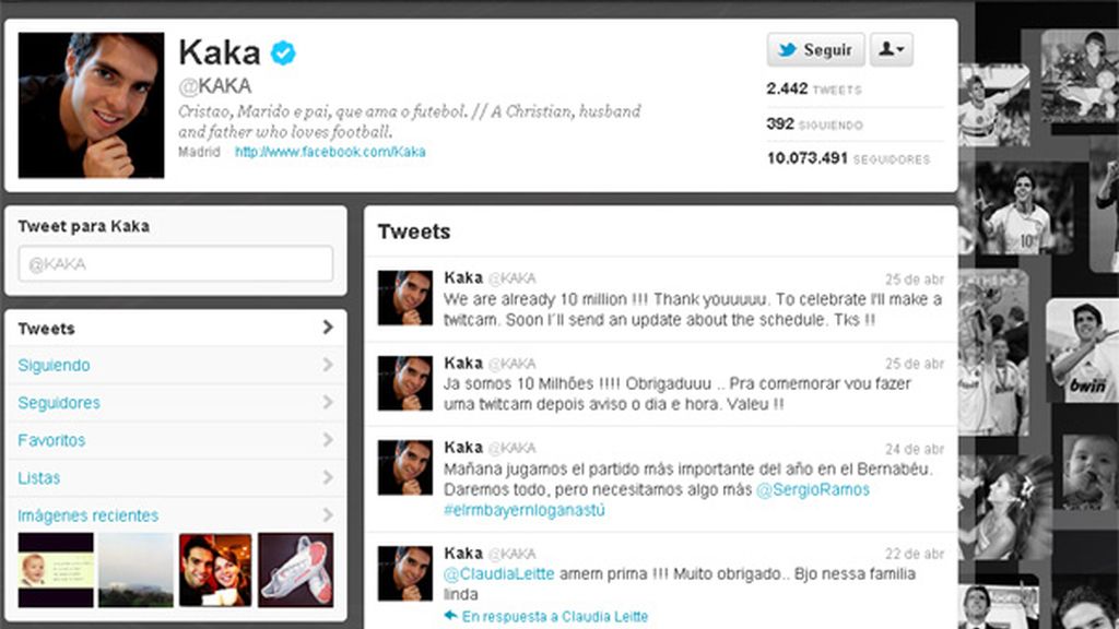 Kaká ha conseguido 30.000 seguidores en un solo día y esto ocurrió la pasada semana, según datos de TwitterCounter.com.