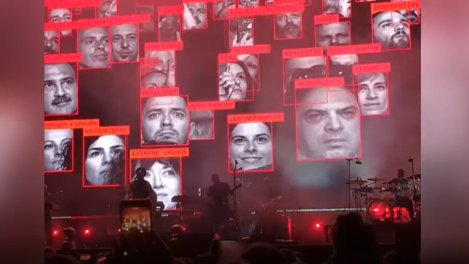 El grupo utilizó tecnología de reconocimiento facial sobre el público presente, integrando los resultados en el espectáculo visual como una forma de denunciar la vigilancia masiva y los riesgos que entraña para la privacidad. Las imágenes en directo mostraban los rostros de los asistentes procesados en tiempo real y proyectados en una inmensa pantalla LED tras los músicos.