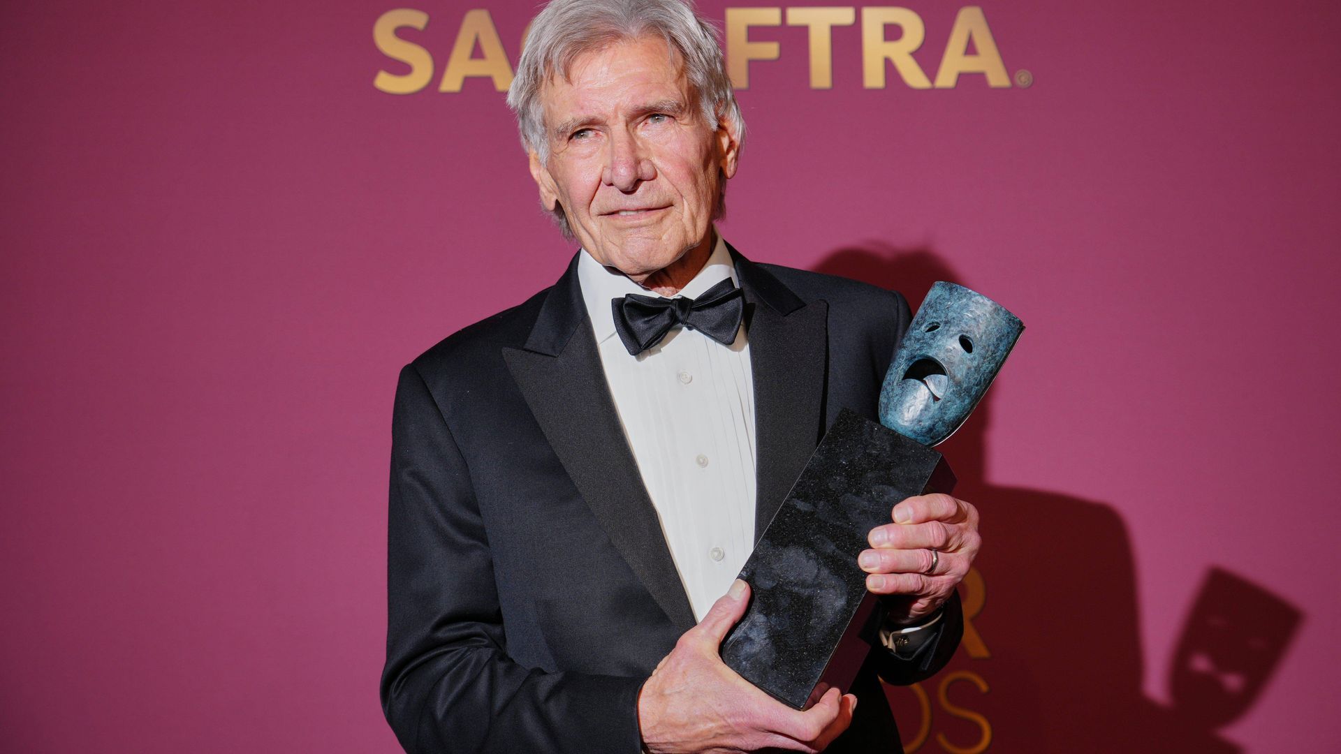 Por eso hay pocos homenajes más merecidos que el que le ha brindado el sindicato de Actores de Hollywood (SAG) al otorgarle su máxima distinción, el premio a la trayectoria. "Me siento muy honrado", dijo Ford al subir al escenario del Shrine Auditorium & Expo Hall de Los Ángeles, ovacionado de pie por colegas y asistentes, entre ellos su esposa, Calista Flockhart. Con 83 años y más de seis décadas de carrera, el actor aprovechó para reflexionar sobre su dilatada carrera con un discurso que combinó humildad, gratitud y humor en el que se mostró visiblemente emocionado.