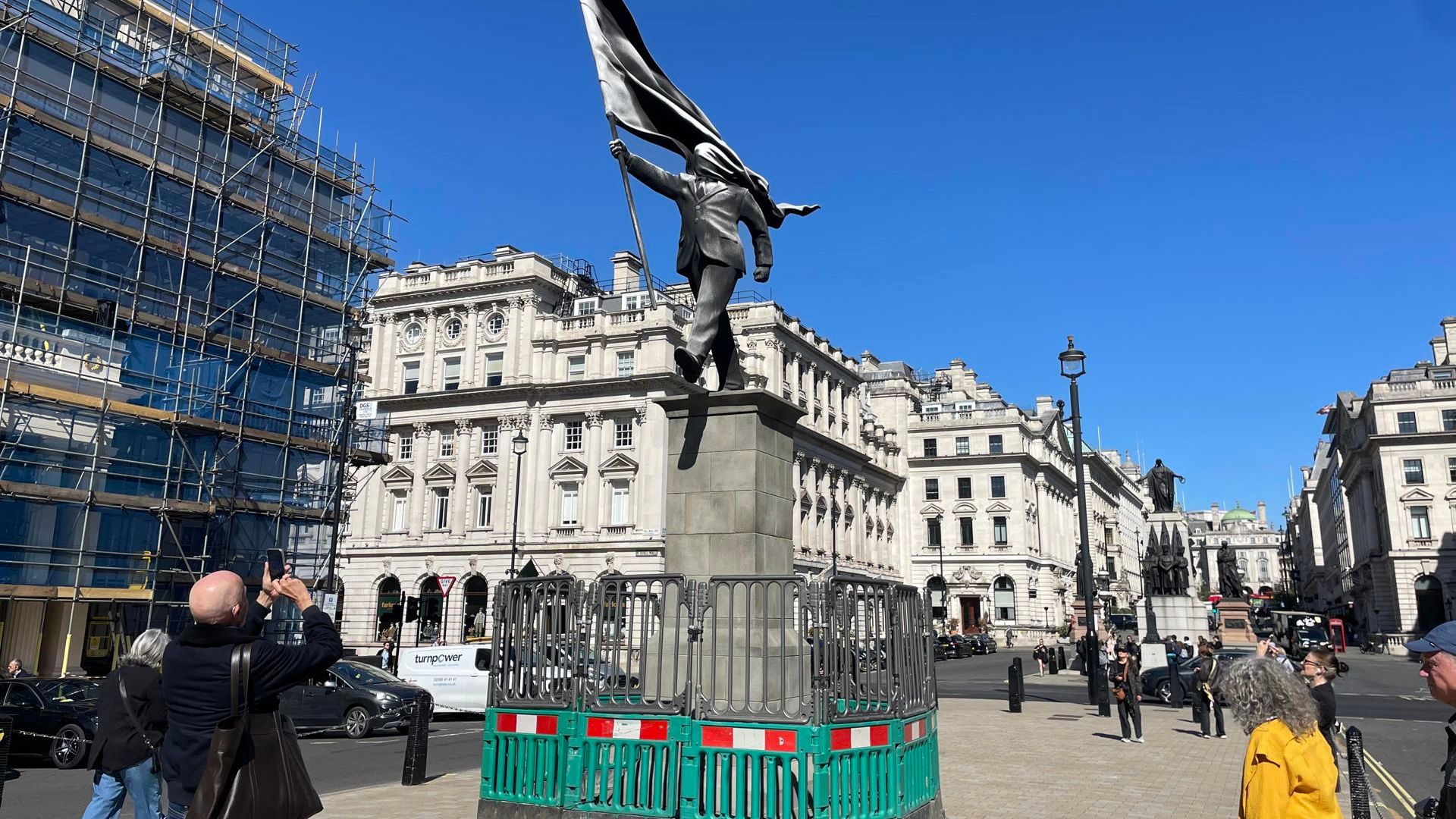 En las últimas horas las autoridades han colocado un cerco de vallas metálicas en torno a la estatua, que se ubica en la avenida Waterloo Place, donde se erigen monumentos a personalidades como Eduardo VII o la enfermera Florence Nightingale y a los Caídos en la Guerra de Crimea.