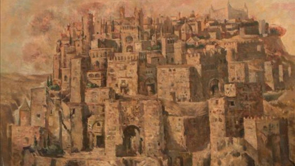 Reproducción de la obra "Toledo" del artista español Domingo Viladomat, la cual forma parte de una muestra que comienza en la Fundación Gabarrón de Manhattan, Nueva York en la que se explora la visión mística del pintor madrileño. EFE/Fundación Gabarrón