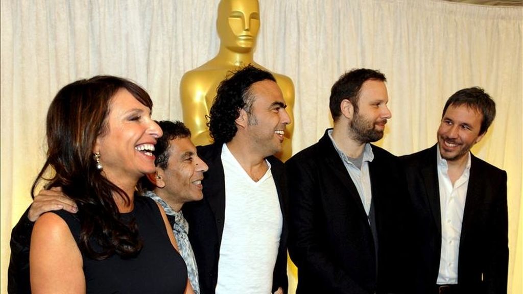 Iñárritu, antes de charlar con la prensa, posó primero para los fotógrafos junto a los cineastas Rachid Bouchareb ("Hors la Loi", de Argelia), Susanne Bier ("In A Better World", de Dinamarca), Denis Villeneuve ("Incendies", de Canadá) y Giorgos Lanthimos ("Canino", de Grecia).