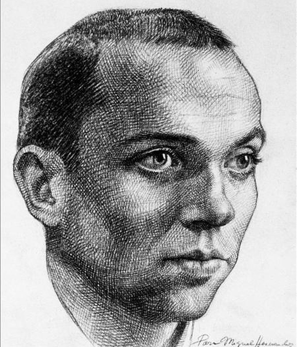 Retrato a lápiz de Miguel Hernández realizado por el dramaturgo Antonio Buero Vallejo a petición del poeta oriolano durante su estancia en la prisión en Madrid, a los pocos días conocer su sentencia de muerte. EFE/Archivo