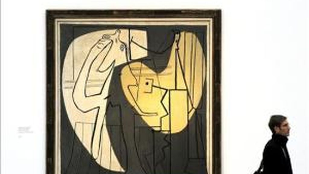 Un hombre camina frente a la obra 'El pintor y su modelo' (Picasso, 1927) en una de las salas del Museo de Bellas Artes (Kunsthaus) de Zúrich (Suiza), que conmemora su centenario desde mañana, viernes, con una exposición dedicada a Pablo Picasso (1881-1973), el artista español que en 1932 protagonizó la muestra más famosa acogida por este centro, hoy, jueves 14 de octubre de 2010. EFE