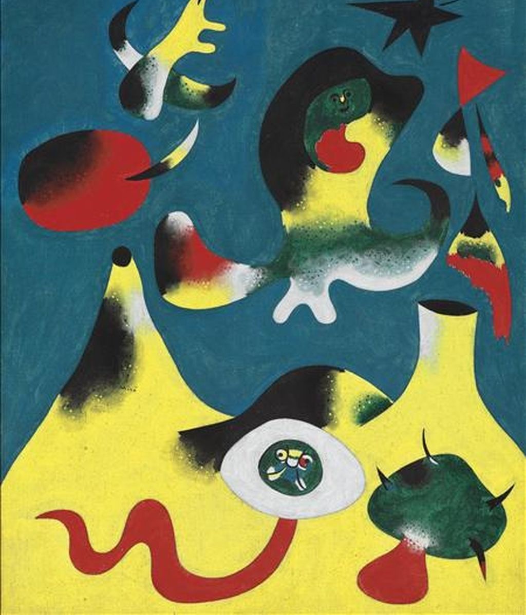 Fotografía cedida este jueves donde se aprecia la pintura "L'Air" del pintor surrealista español Joan Miró, que protagonizará junto a otras obras de Picasso y Gris una subasta de arte impresionista y moderno que tendrá lugar el próximo 3 de noviembre en la sede neoyorquina de Christie's. EFE