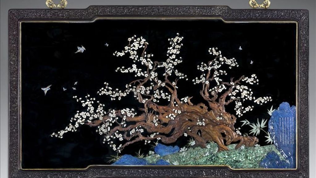 Fotografía cedida en donde se aprecia un cuadro que forma parte de casi un centenar de los objetos que adornaban el palacio imperial de Pekín y que se presentan como los protagonistas de la exposición "El paraíso privado del emperador: tesoros de la ciudad prohibida". EFE