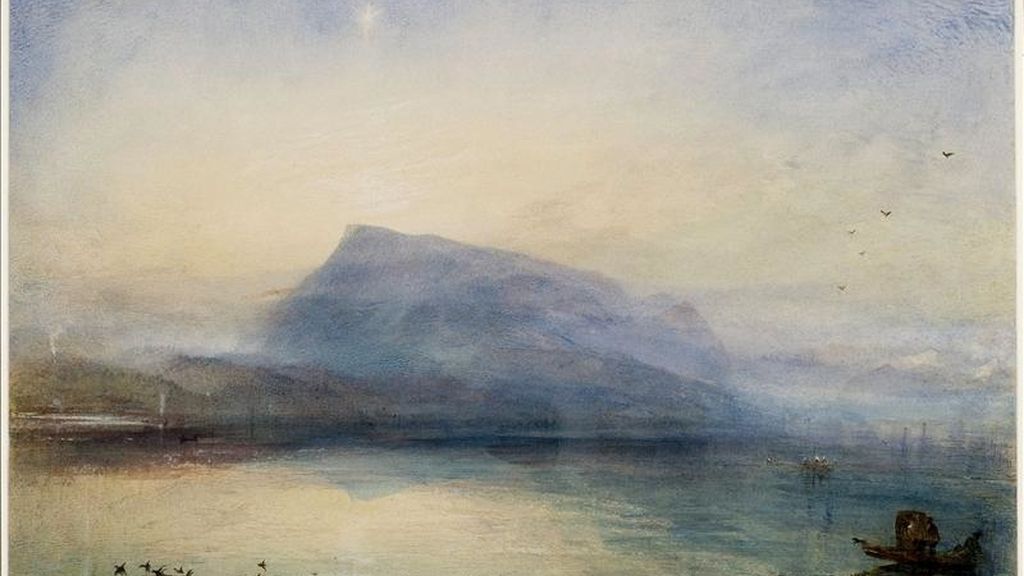Y sobre todo del gran maestro de ese medio, J.M.W. Turner (1775-1851), del que se exhiben, entre otras, su "Rigi azul. Amanecer", una de las vistas de esa montaña junto al lago de Lucerna que algunos han comparado por sus efectos lumínicos con la famosa serie del impresionista francés Monet sobre la catedral de Rouen.