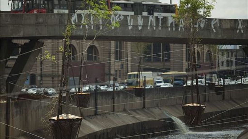 La creación puesta sobre el contaminado río forma parte del proyecto "Margem", que tiene curaduría del arquitecto y urbanista brasileño Guilherme Wisnik y traduce una "crítica de poética ácida y áspera" sobre el desarrollo urbano desenfrenado en la mayor ciudad suramericana.