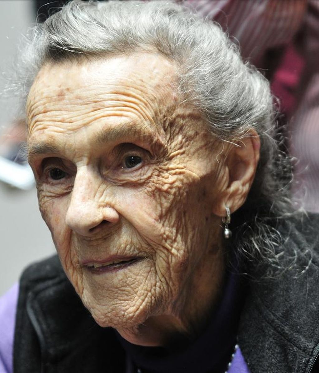 Fotografía del 9 de abril de 2011, de la pintora y escultora mexicana de origen inglés Leonora Carrington, durante la inauguración de su última exposición y aparición en publico, quien falleció en la capital mexicana a los 94 años. Portavoces del Consejo Nacional para la Cultura y las Artes (Conaculta) dijeron que la artista murió este 25 de mayo de 2011 a las 22.00 hora local (O3.00 GMT) de una neumonía cuando estaba ingresada en el Hospital Inglés de la ciudad. EFE