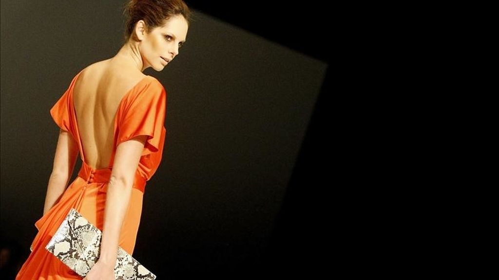 Una modelo viste una creación de la diseñadora Adriana Castro, durante la Semana Internacional de la Moda de Bogotá, en Bogotá (Colombia). EFE