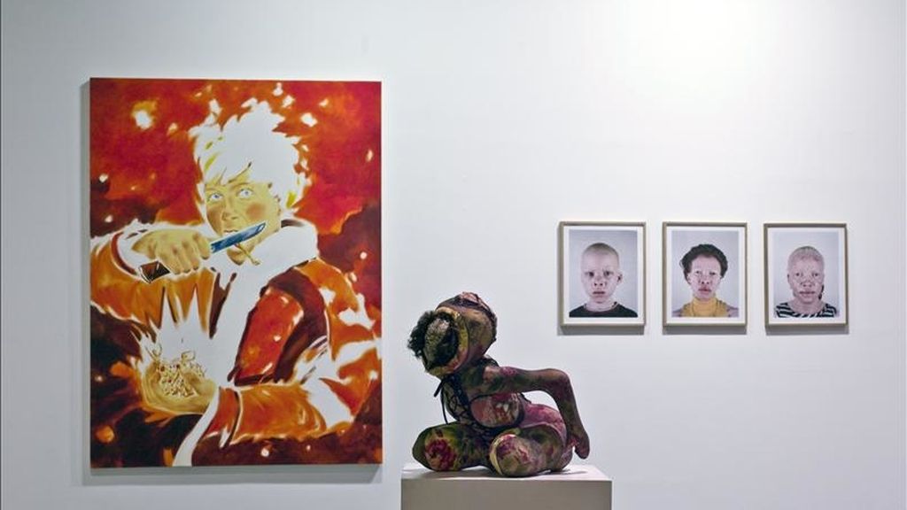Fotografía facilitada por Etienne Pottier de varias de las obras que forman parte de la exposición "Todos caníbales", que recoge el afán del ser humano por devorar a sus iguales que inspiró tanto a las antiguas tribus de Nueva Guinea como a videoartistas contemporáneos, pasando por maestros como Francisco de Goya o Lucas Cranachy, y que se muestra en la Maison Rouge de París. EFE