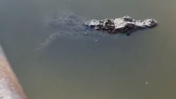 Un enorme caimán pasea tranquilamente por las calles de Charleston, un pueblo de Carolina del Sur, en EEUU