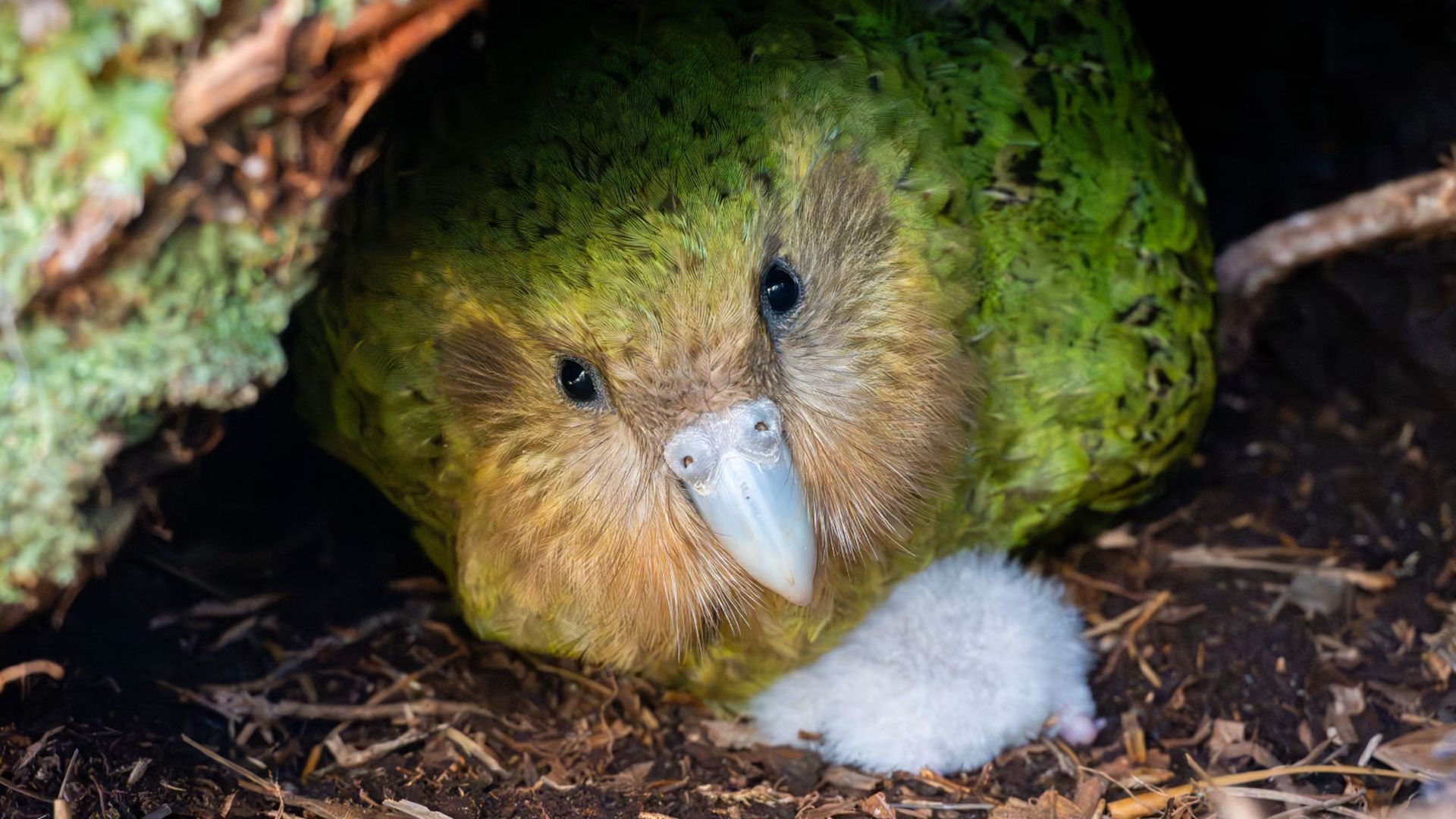 El Departamento de Conservación de Nueva Zelanda ha instalado una cámara en el nido de una Kakapo para observarla en directo