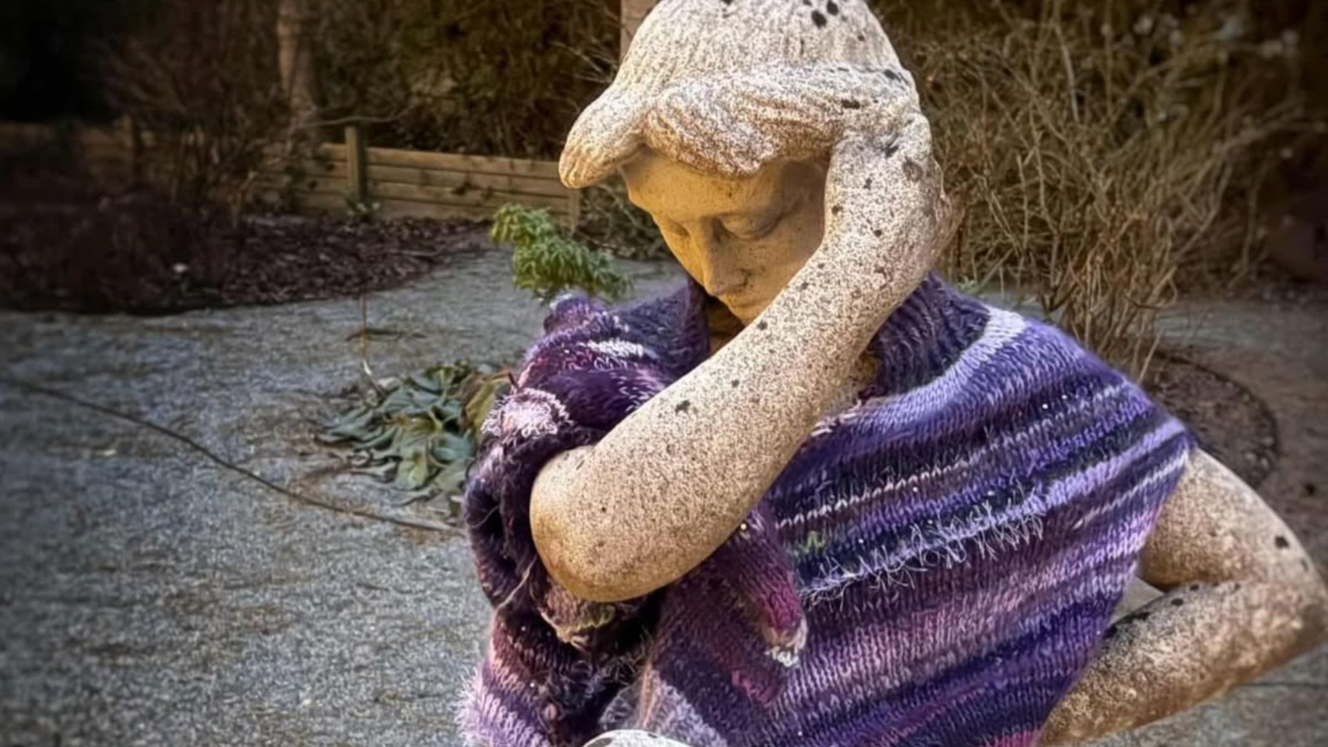 Louise Moerup inició en Navidad un movimiento de mujeres tejedoras que ha cubierto de prendas las estatuas de su ciudad