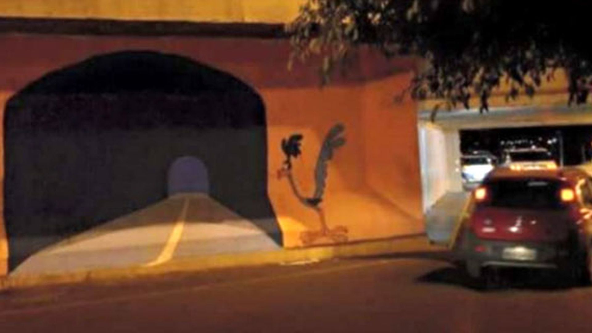 Empotra el coche contra una pared en la que estaba pintado un túnel