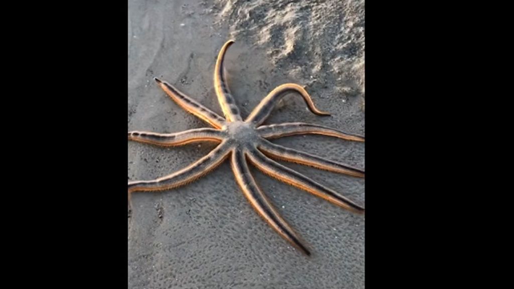 Varios testigos avistaron una estrella de mar que se arrastraba por la orilla hacia el agua durante la marea baja en una playa de Florida, en EEUU. La escena se ha hecho viral en las redes sociales. En las imágenes se puede ver cómo el animal aprovecha las corrientes de agua y se impulsa con sus brazos para volver a su casa.
