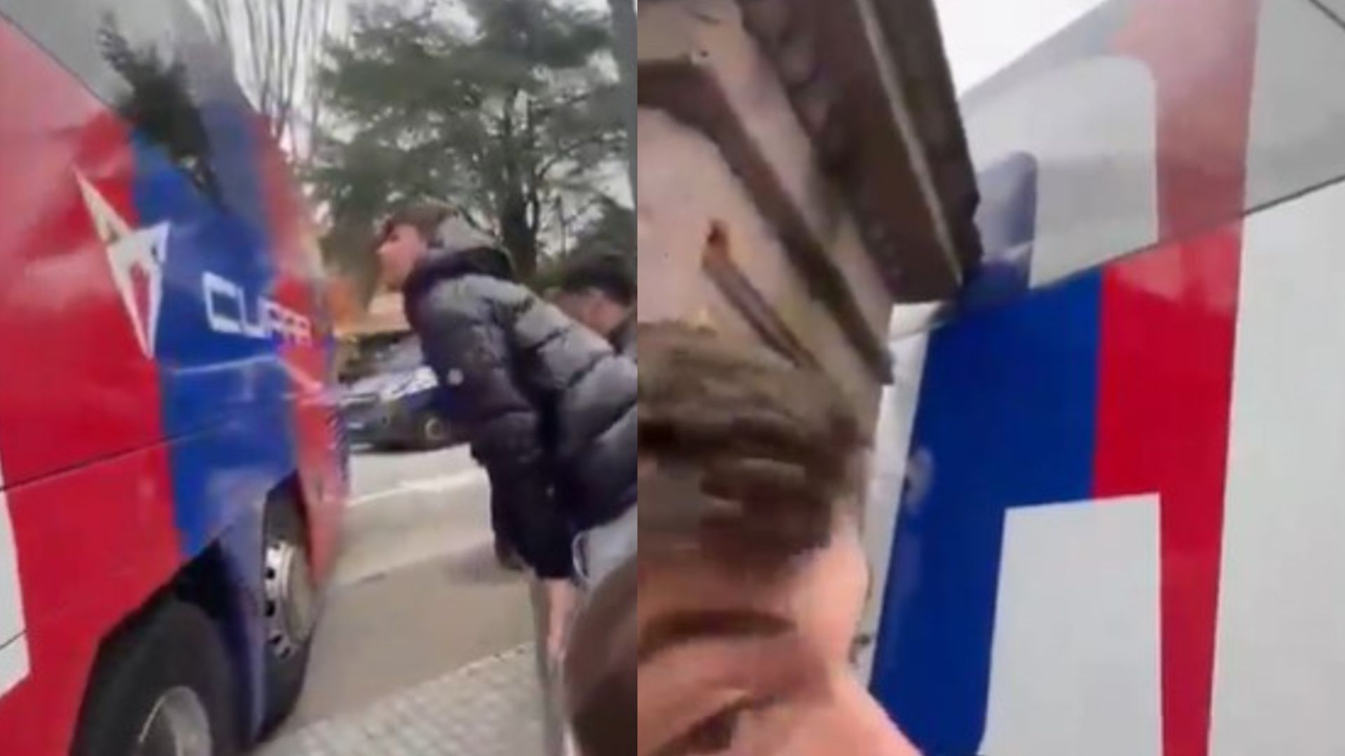 A su llegada al hotel, sobre las 13:00 horas, el equipo fue recibido por medio centenar de personas. Los aficionados han estado pendientes a los movimientos y han sido testigos del percance del chófer culé. Cuando el autocar salía del complejo en el que se hospedan los jugadores ha sufrido un golpe con un muro. El momento ha sido captado por algunos hinchas y el vídeo se ha vuelto viral en redes sociales. Algunos usuarios -como @racinguismo_com en X- han difundido el documento. "Ostras... Ay, ay, ay", han gritado los aficionados sorprendidos.