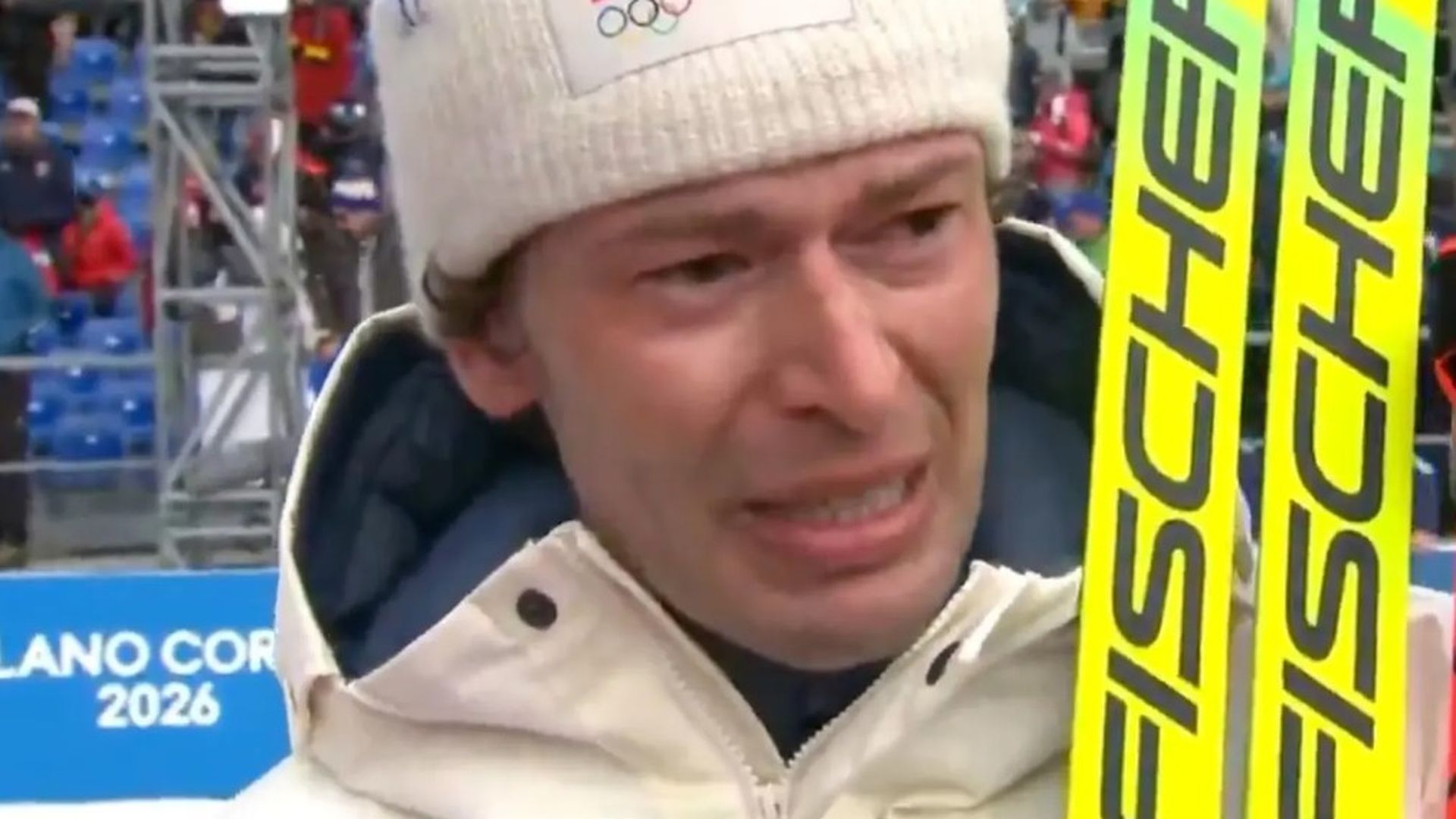 Una imagen del noruego Laegreid llorando tras ganar la medalla de bronce en los JJOO de Invierno. Telecinco