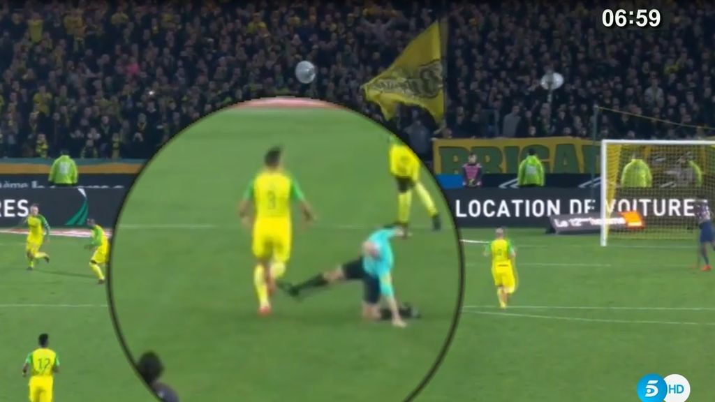 ¡Insólito! El árbitro del Nantes-PSG da una patada a un jugador y lo expulsa