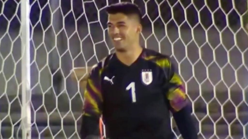 Luis Suárez hace de Ter Stegen en el homenaje a Diego Forlán