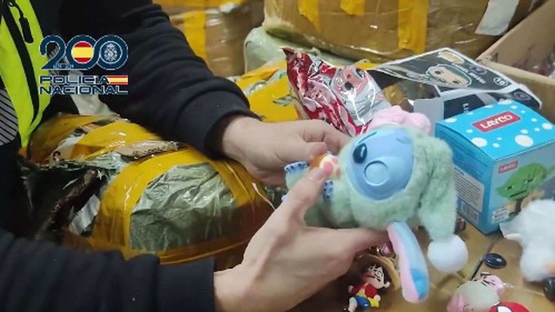 La Policía Nacional ha incautado más de 600.000 peluches, llaveros y otros artículos falsificados, procedentes de China, que estaban almacenados en varias naves industriales de los municipios madrileños de Fuenlabrada, Getafe y Parla. Los objetos, la mayoría sobre la serie de éxito 'Stranger Things', eran de una calidad muy inferior a los originales. Se trata de la mayor intervención de juguetes falsos realizada hasta el momento, con unas 25 toneladas de productos falsificados, según destaca la Dirección General de la Policía.