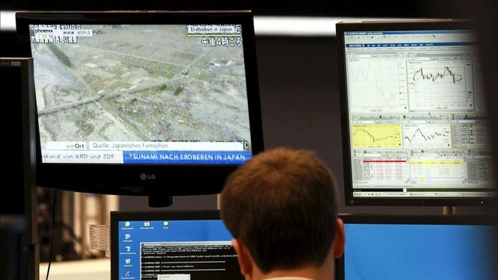 Un agente bursátil trabaja junto a una pantalla. EFE/Archivo