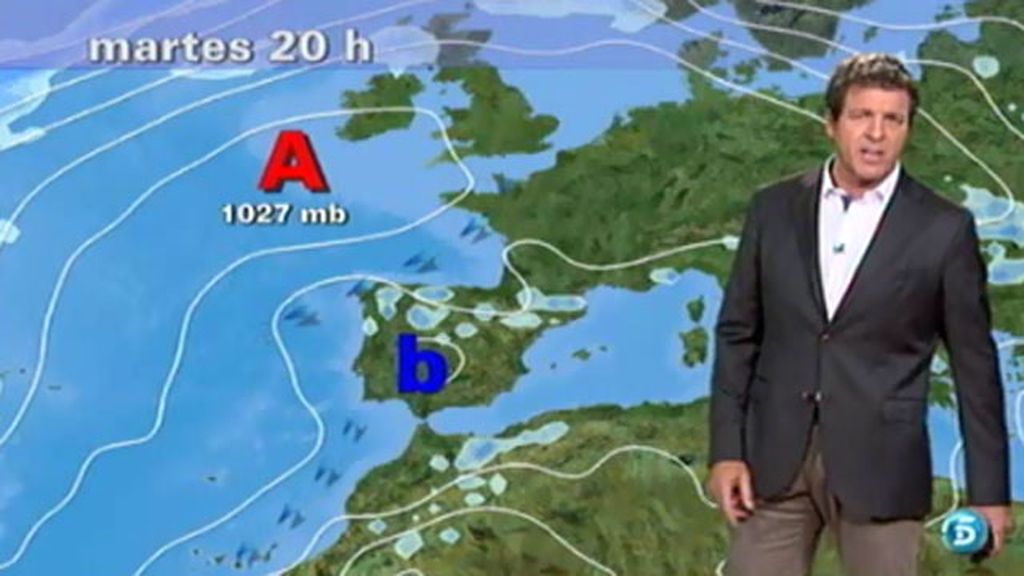 Siguen las altas presiones y las tormentas por el norte. Para el martes, se esperan muchas nubes durante la segunda mitad del día. Estará despejado en el resto peninsular. Las temperaturas se mantendrán sin cambios.