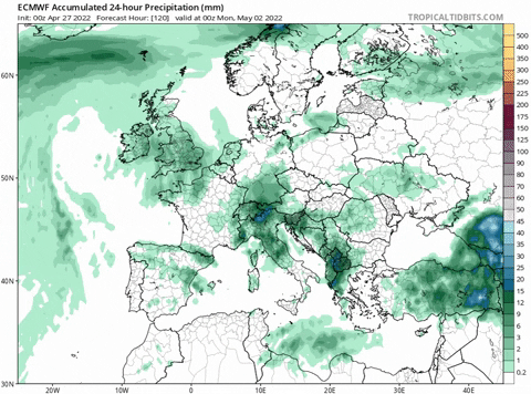 *Precipitaciones previstas entre el lunes 2 y jueves 5 de mayo / ECMWF / Tropical Tidbits