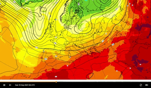 *Temperatura y geopotencial (500 hPa) previsto por el modelo ECMWF