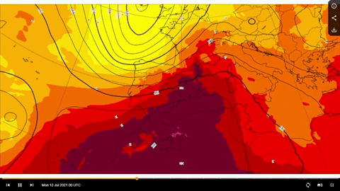 *Temperatura y geopotencial a 500 hPa previsto por el modelo ECMWF