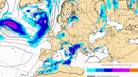 Durante la tarde del miércoles, el viento cambiará al suroeste, las nubes aumentarán y lloverá en las regiones atlánticas por la llegada de un frente asociado a la profunda borrasca que golpeará Reino Unido. De cara al jueves, el paraguas será necesario en toda Galicia, así como en toda el área del Cantábrico, el norte de Castilla y León y los Pirineos occidentales.