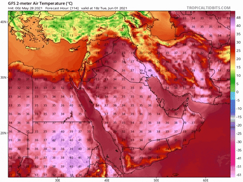 Y es cuestión de tiempo que llegue hasta estas regiones una masa de aire cálido que dispararía el termómetro incluso por encima de los 52 ºC en algunas ciudades de Irán o Iraq.