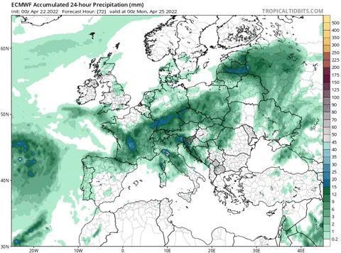 *Previsión de precipitaciones de lunes a jueves / ECMWF / Tropical Tidbits