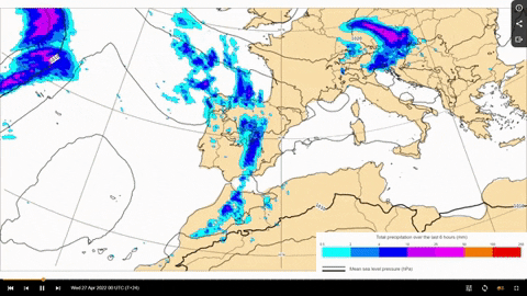 De cara al miércoles, el meteorólogo de la Aemet espera que el frente avance al este y que la jornada sea de cielos nubosos y lluvias generalizadas en amplias zonas de la Península excepto en el norte y este de Cataluña, así como en el Estrecho y Baleares.