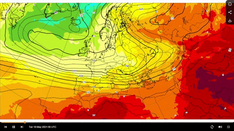 *Temperatura (850 hPa) y geopotencial (500 hPa) previstos por el modelo ECMWF