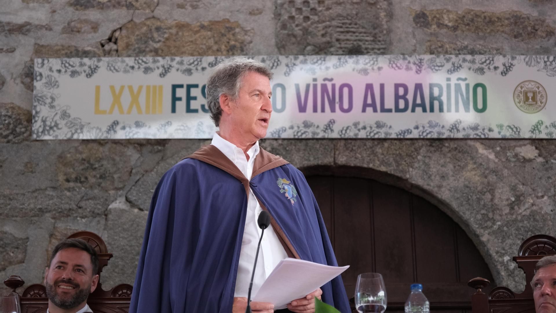 Alberto Núñez Feijóo ha presidido en Cambados la Fiesta del Albariño, como gran maestre del capítulo. Ocasión que ha provechado para lanzar críticas y varios dardos, sin citarlo, a Pedro Sánchez.