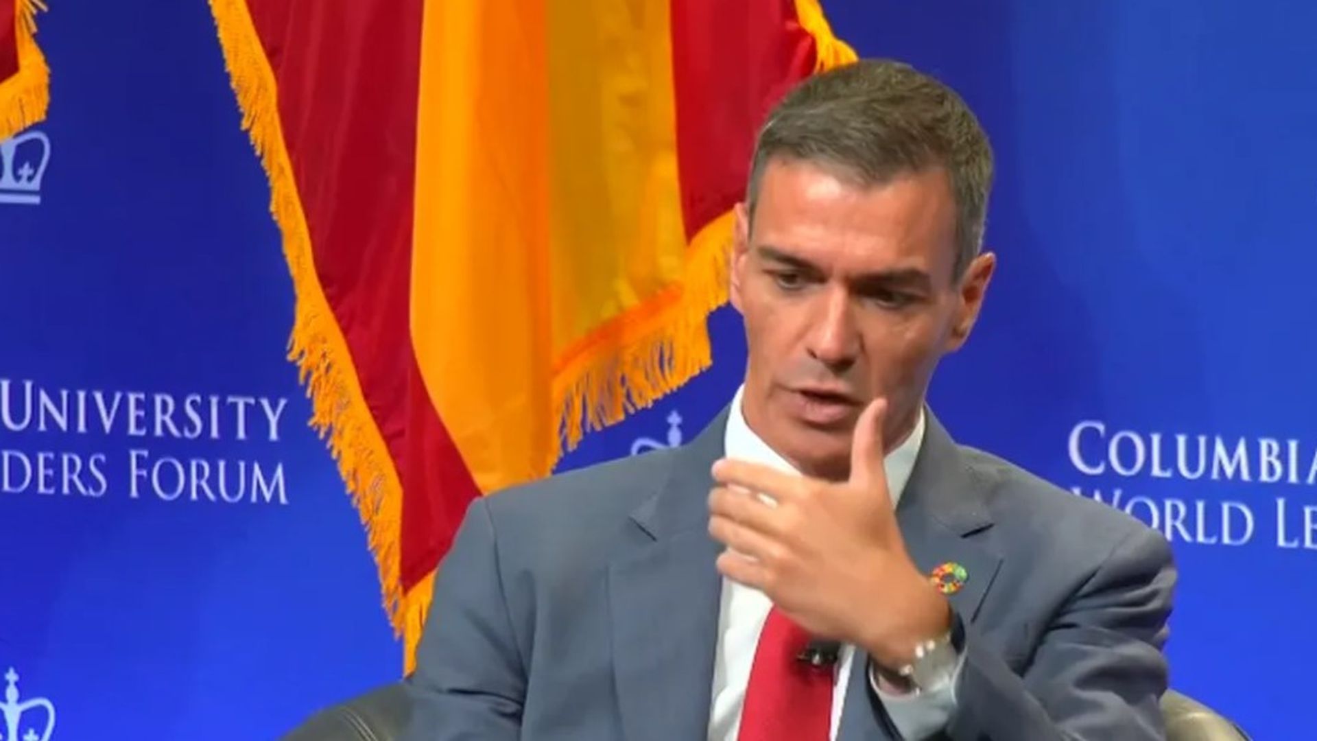Durante su intervención en el Foro Mundial de Líderes, de la Universidad de Columbia, en Nueva York, Sánchez ha vuelto a defender que no cabe un "doble rasero" en lo que tiene que ver con Rusia, tras la invasión de Ucrania, e Israel y su operación militar en Gaza.