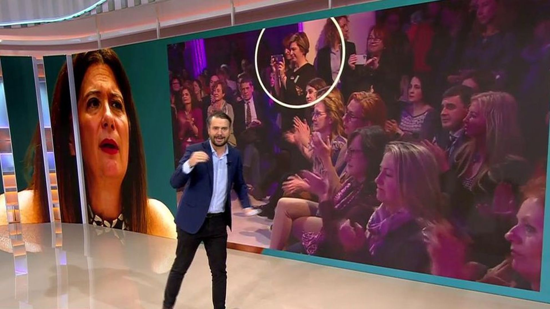 También podemos verla en primera línea del principal acto por el 8 de marzo en Madrid, donde se encuentra rodeada de ministros como Marlaska, María Jesús Montero o de la exvicepresidenta Carmen Calvo.