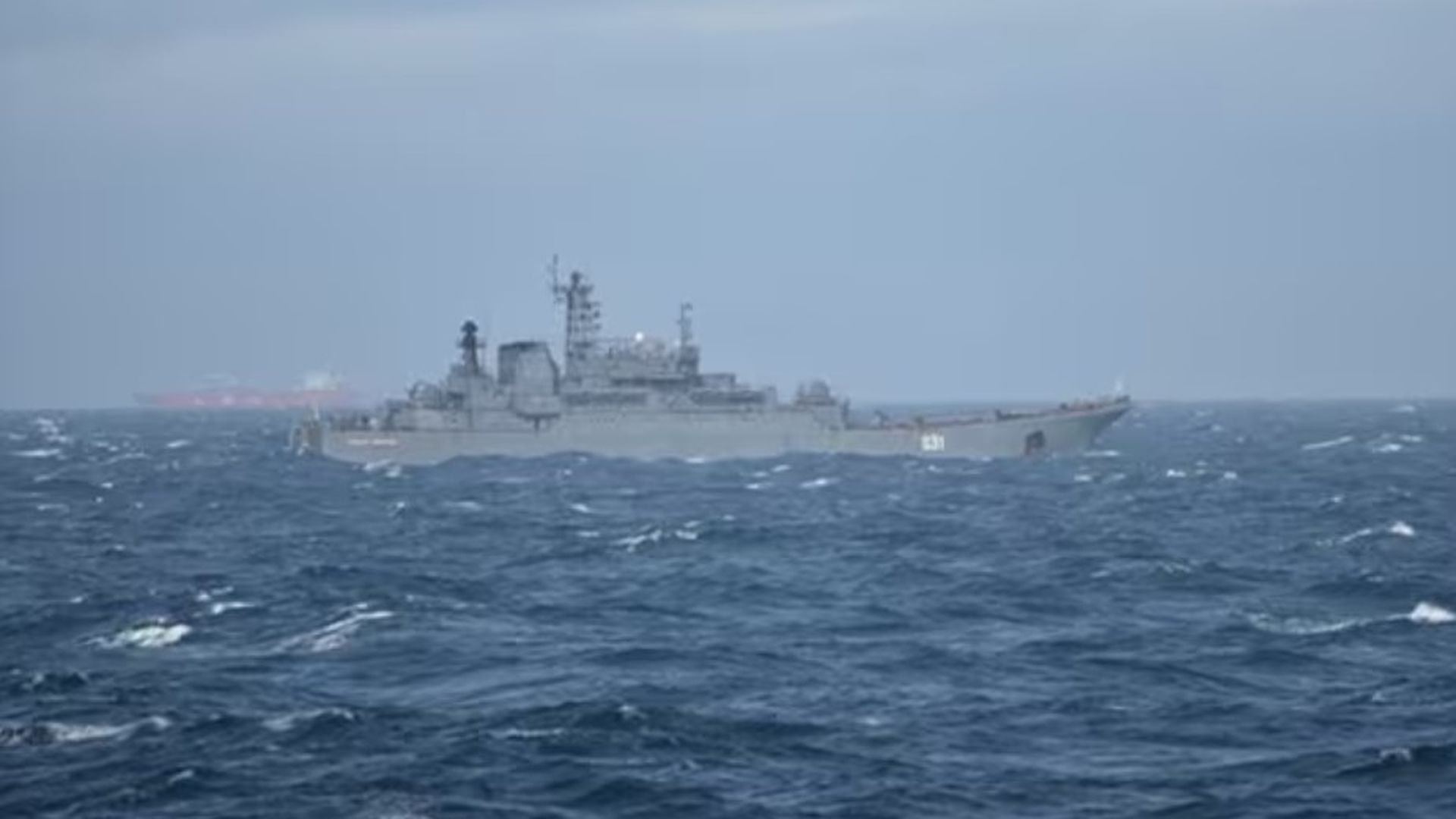 Imagen del LST 'Alexander Otrakovskiy', interceptado por el BAM 'Audaz'.. Estado Mayor de la Defensa (EMAD)