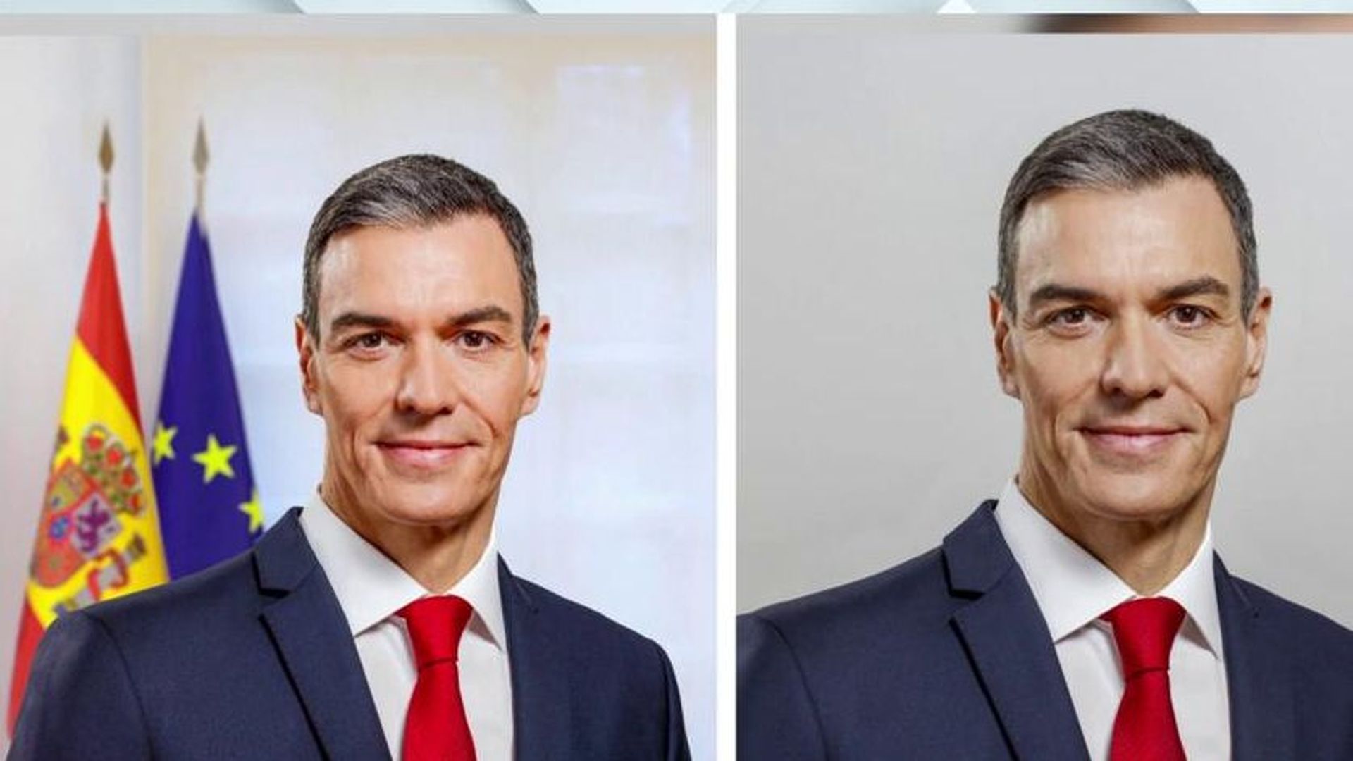 Ahora, Sánchez aparece mirando de frente y con una corbata de color rojo, protagonizando una imagen que parece de estudio. Pero hay un detalle que no ha pasado desapercibido.