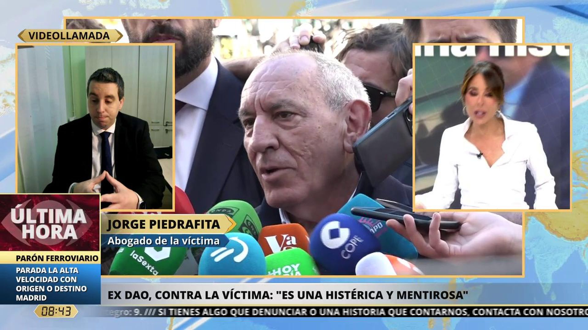 En 'La Mirada crítica', Ana Terradillos ha podido entrevistar a Jorge Piedrafita, abogado de la víctima en el caso de José Ángel González, ex DAO de la Policía acusado de agresión sexual a una subordinada. Tras declarar ambos ante el juez, el ex DAO manifestó por primera vez ante los medios de comunicación: "me han destrozado la vida, me han destrozado la vida personal y familiar".