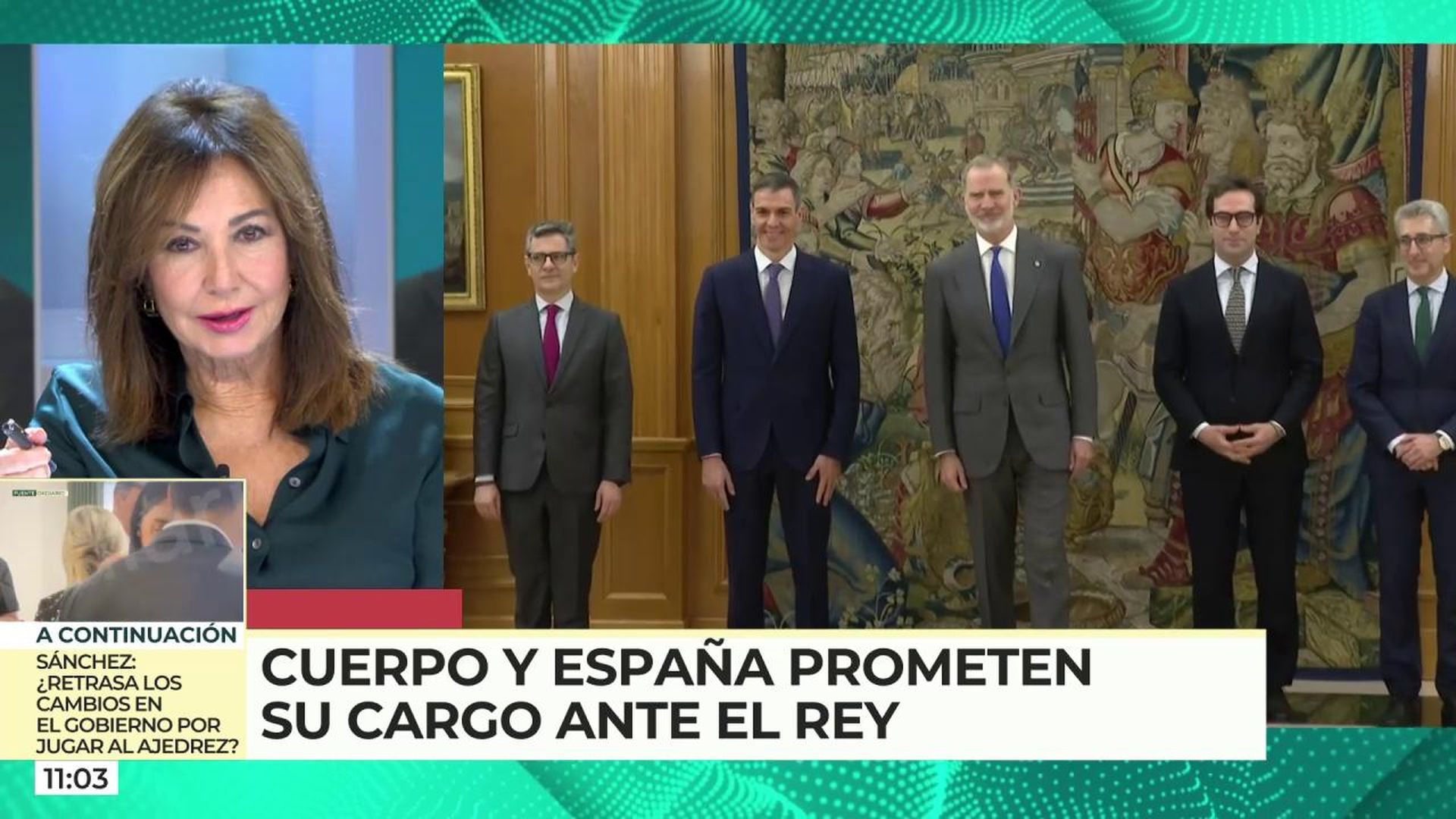 En un acto celebrado en el Palacio de La Zarzuela, Carlos Cuerpo y Arcadi España han prestado juramento ante el rey Felipe VI para asumir sus nuevos cargos en el Gobierno, un evento que ha contado con la presencia de Pedro Sánchez y Félix Bolaños y se ha comentado en 'El Programa de Ana Rosa'