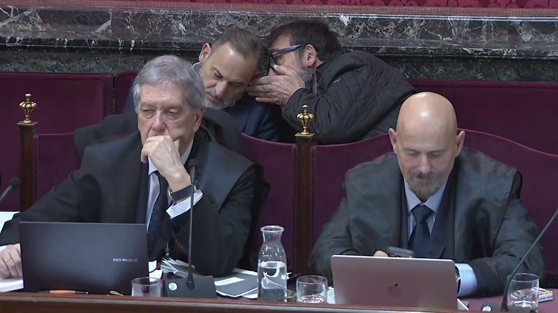 Marino Turiel, abogado de José Luis Ábalos confirma que "cada uno tiene su estrategia de defensa, a veces coincidente, a veces no, pero la relación es buena". Eso resulta evidente durante las primeras horas del juicio. Lo hemos visto en la sala. Comentando la comparecencia de los testigos. A carcajadas con una de las respuestas de Jessica. También con sus letrados. Nada más sentarse en el banquillo Koldo pedía papel y bolígrafo a su abogada, con la que estuvo intercambiando notas. Corrillo entre los cinco en una de las pausas entre declaraciones.