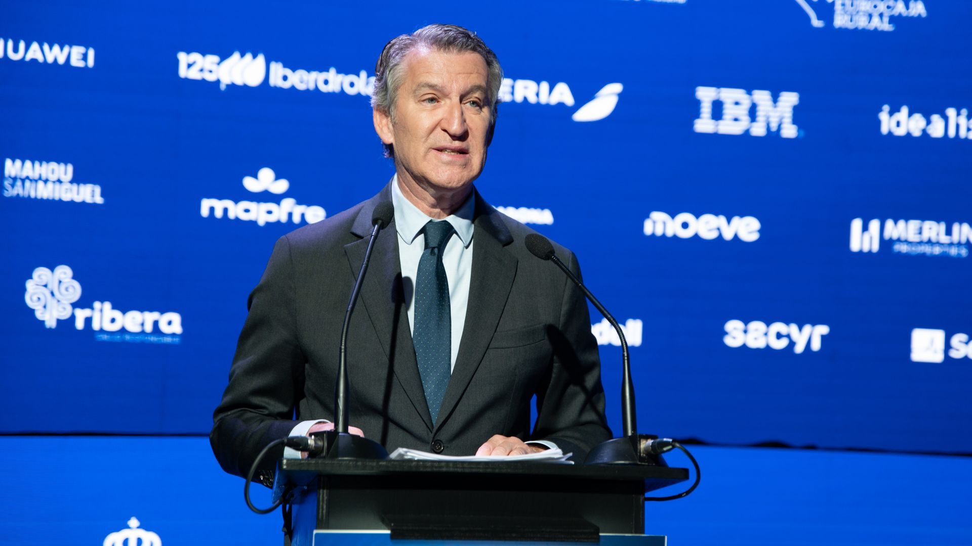 En su discurso público en el foro, Feijóo ha afirmado que el Gobierno de Pedro Sánchez está tomando decisiones que "traicionan los pilares básicos del europeísmo".