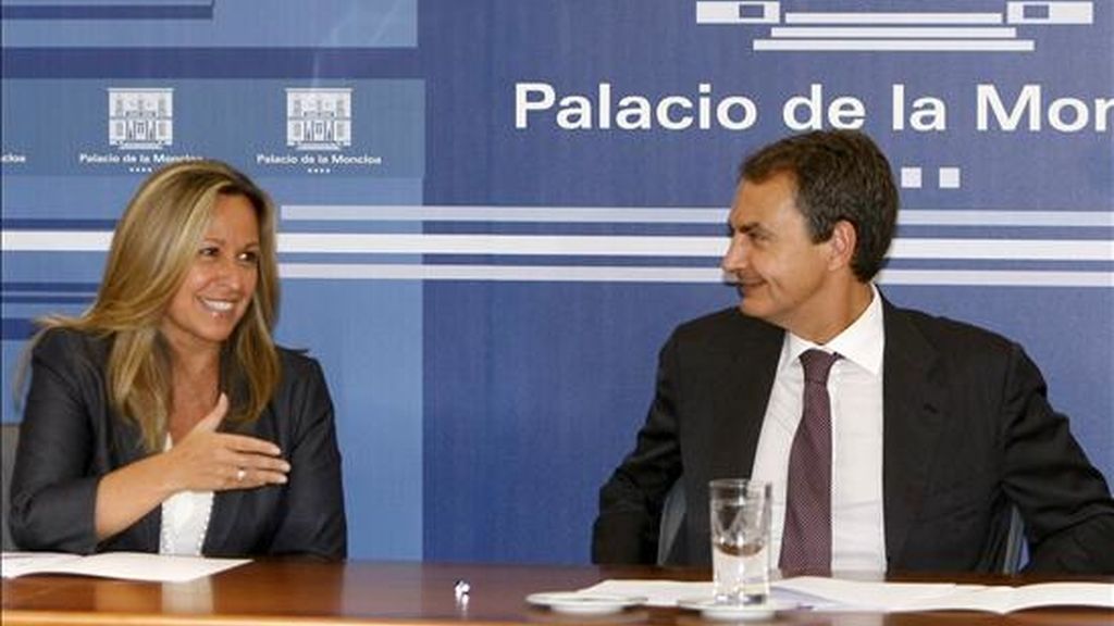 El presidente del Gobierno, José Luis Rodríguez Zapatero, conversa con la ministra de Sanidad, Trinidad Jiménez, durante una reunió en el Palacio de la Moncloa. EFE/Archivo