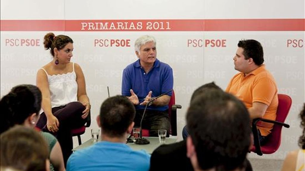 José Miguel Pérez (c), candidato en las primarias del Partido Socialista (PSC-PSOE), en Canarias, durante su intervención ayer en el encuentro 'Los jóvenes con José Miguel', organizado por la plataforma de Juventudes en apoyo a su candidatura. EFE