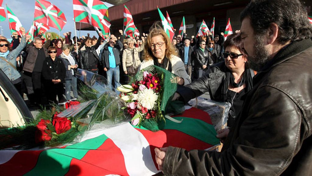 Los restos mortales del exjefe de ETA Francisco Javier López Peña, "Thierry" han llegado esta mañana al aeropuerto del viejo aeropuerto de Sondica (Vizcaya), procedentes de París. Allí le esperaban unas 150 personas con ikurriñas, que le han brindado un homenaje con el tradicional baile del 'aurresku' incluido. Posteriormente han gritado "gora ETA militar".